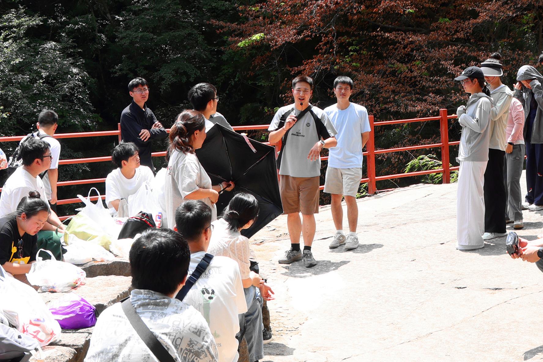 抵达目的地后,全员进行了热身,为登山做好充分准备。随后自由组合成4个小组,推选组长并统筹协调。徒步途中,一幕幕暖心场景接连上演:体力充沛的青年主动接过同伴的背包,陡峭路段上队员们手手相扣形成稳固“人链”,有人步伐放缓时,身旁立刻响起“加油,我们一起走”的鼓劲声,更有不少人沿途弯腰捡拾垃圾,以行动践行“无痕户外”理念……这些双向奔赴的扶持,让攀登之路充满温度,更生动诠释了“共攀高峰”绝非单打独斗,而是并肩前行的深层含义。最终,在全员互助下,所有成员成功登顶,无人掉队。山顶的团建游戏将气氛推向高潮:“教练说”游戏中,大家全神贯注捕捉指令,在动静之间锤炼反应与专注;“运动大脑”环节里,抛接水瓶的互动让团队配合愈发流畅,笑声与喝彩声在山间回荡。