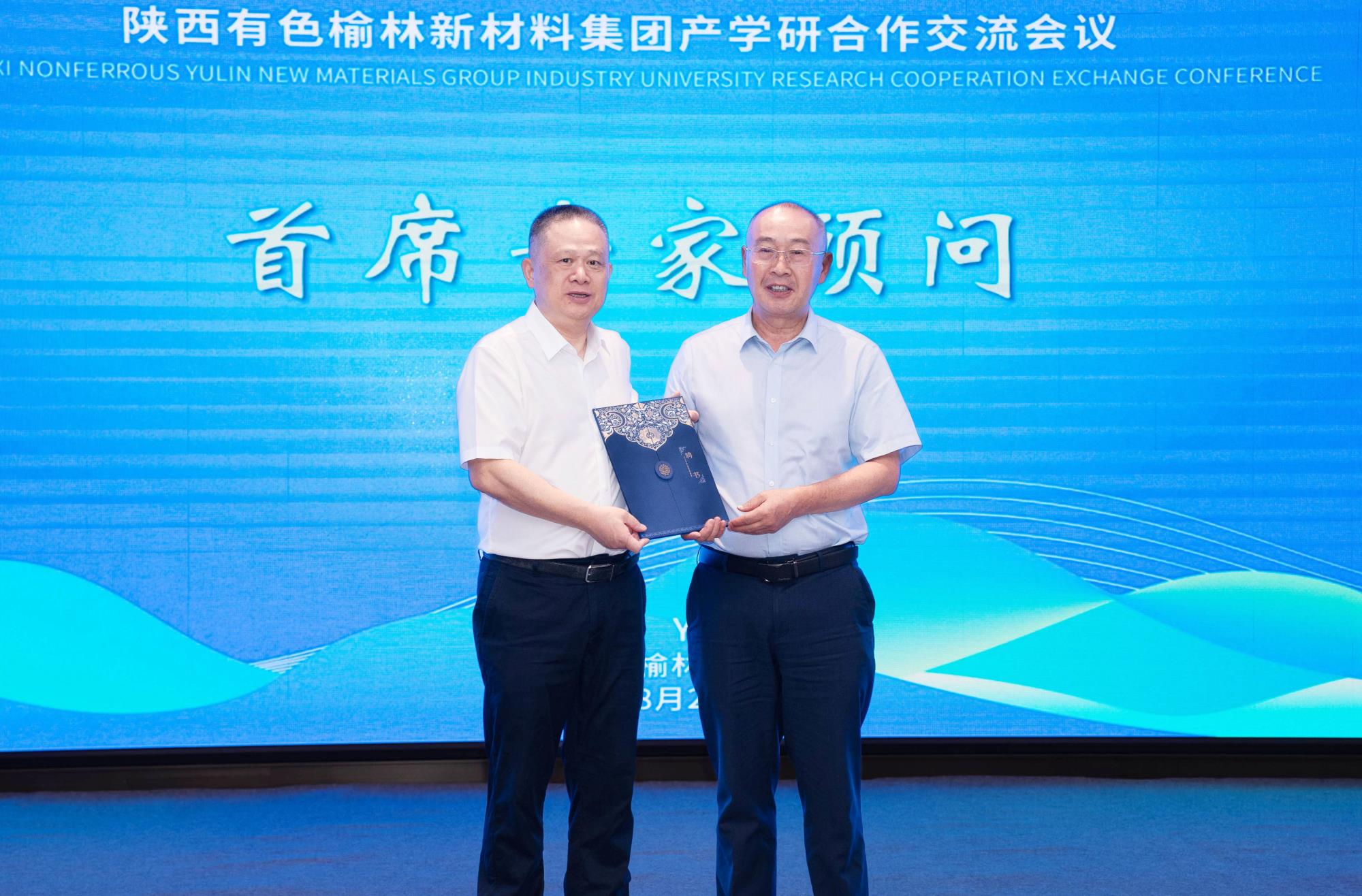 杨国平代表榆林新材料集团向郭学益颁发首席专家顾问聘书