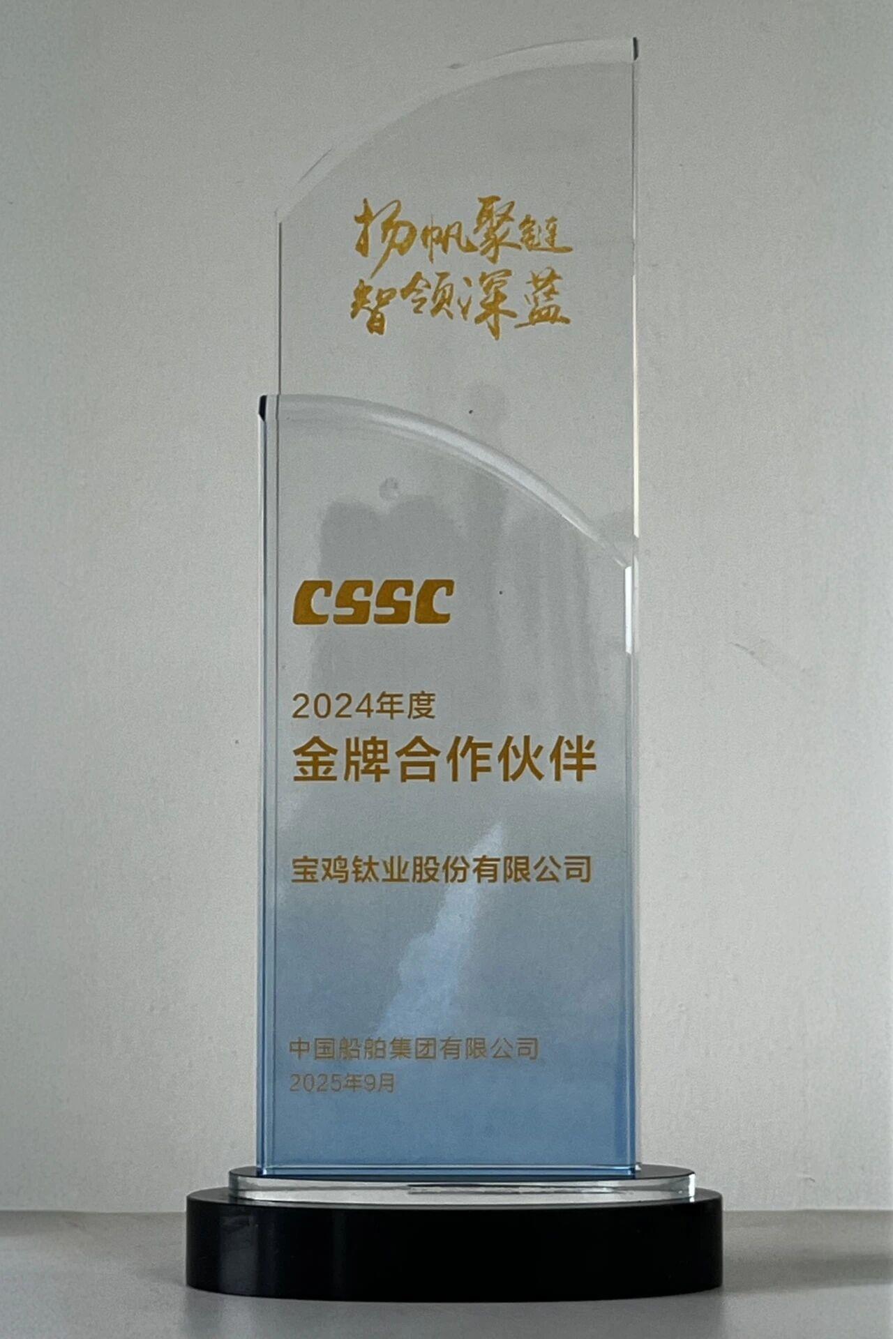 近日,中国船舶集团有限公司(以下简称中船集团)举办以“扬帆聚链 智领深蓝”为主题的产业链供应链大会。作为钛及钛合金材料领域的代表,宝钛股份在大会上荣获2024年度“金牌合作伙伴”称号。宝钛股份总经理张海龙带队出席会议并领奖。