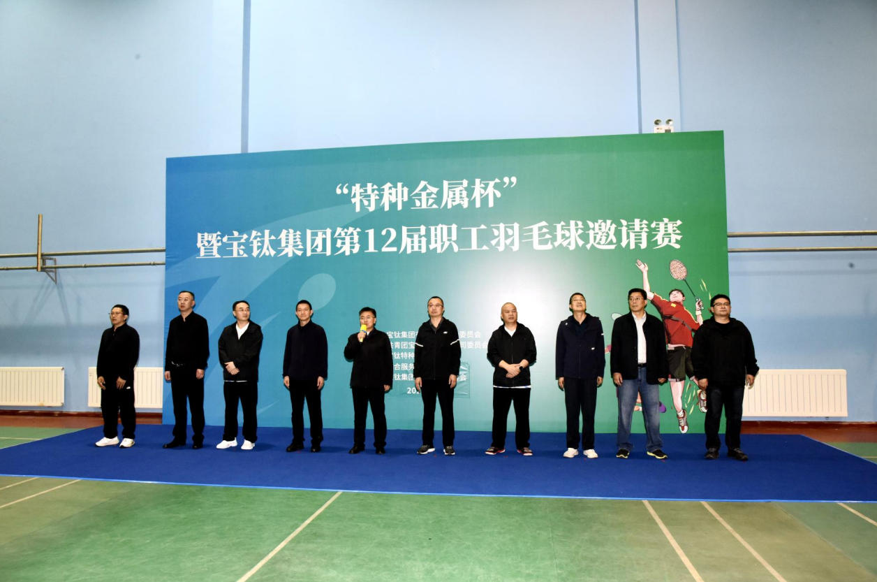9月24日晚,“特种金属杯”暨宝钛集团第十二届职工羽毛球邀请赛在老区文体中心羽毛球馆开赛。宝钛集团党委委员、副总经理何联国宣布开赛。宝钛集团领导田金鹏、陶海林、耿爱武出席开幕式。