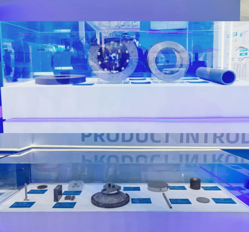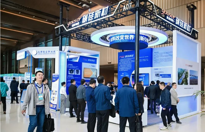 近年来,陕西bet356的官方网站中文版集团深化改革创新,以“着力科技自立自强,建设现代产业体系”为着力点,锚定“千百十一”高质量发展阶段性目标,转型升级传统产业,培育发展战新产业,前瞻布局未来产业。本次参展,碳硅新材以“碳硅筑新,智领未来”为核心主题,深度融合企业技术基因与产业特性,展出中间相沥青基碳纤维及其复材、高性能树脂、金属基复材、碳陶刹车盘、碳陶热场、超韧氧化铝粉体、高纯碳化硅粉体等37件战新类产品。通过视觉呈现、互动体验等多维度协同,打造“沉浸式技术展示+精准化合作对接”的创新展出形式,受到复合材料行业专家一致好评,吸引了众多行业从业者参观驻足,有效提升了陕西有色品牌识别度。参展产品体现了碳硅新材与国内知名高校院士专家团队的深度合作,不仅性能优势显著,更具备成熟的产业化落地能力,充分彰显“技术引领、产研融合”的发展特色。